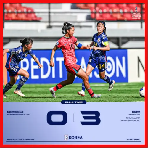 이로써 일본은 U-17 여자 월드컵 본선 진출 티켓을 획득하였으며 한국은 19일 중국과의 3위 결정전을 통하여 월드컵 본선 진출 여부를 결정할 수 있게 되었습니다.