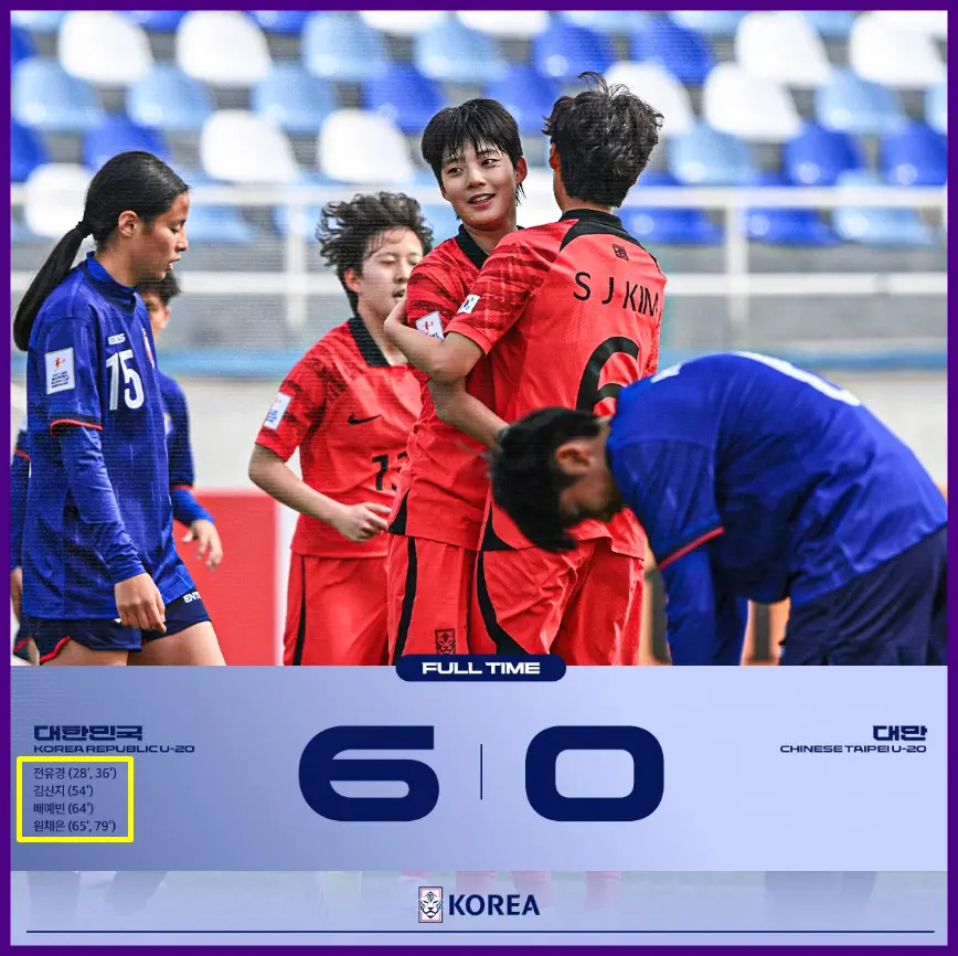 후반에는 김신지, 배예빈, 원채은이 2골을 넣으며 6대 0의 대승을 거두었습니다.