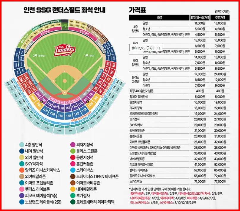 인천 SSG 랜더스필드 좌석 및 가격 안내